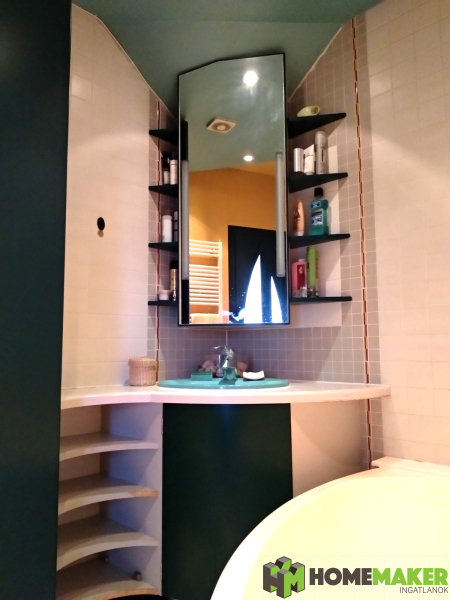 Ennek a lakásnak igazán különös, egyedi hangulata, színvilága van kreatív megoldásokkal, belsőépítész által tervezett berendezéssel, bútorokkal és maximális helykihasználással.