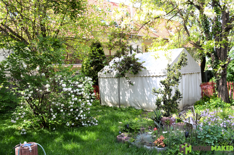 A gyönyörű kertben még egy fedett kiülő kapott helyet.