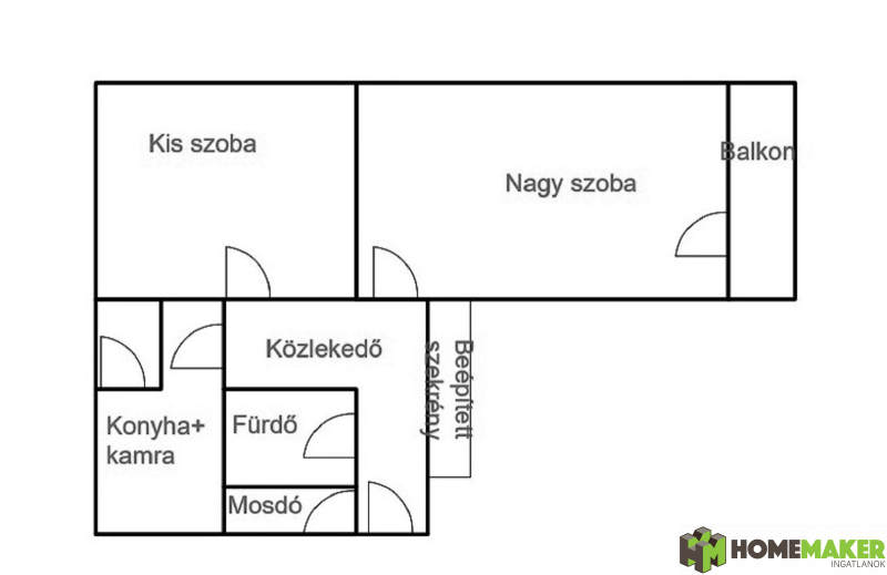 – mindkét szoba a közlekedőből nyílik