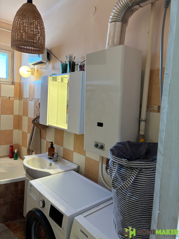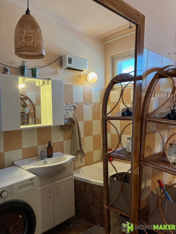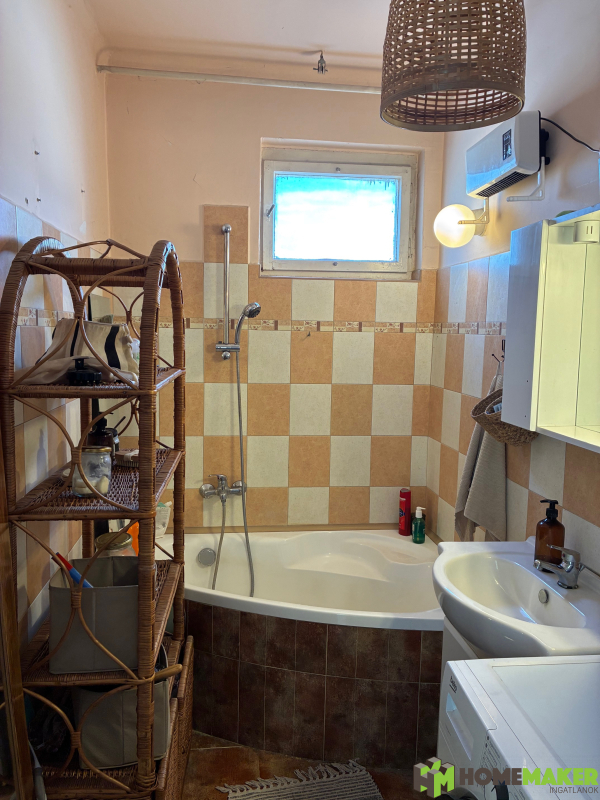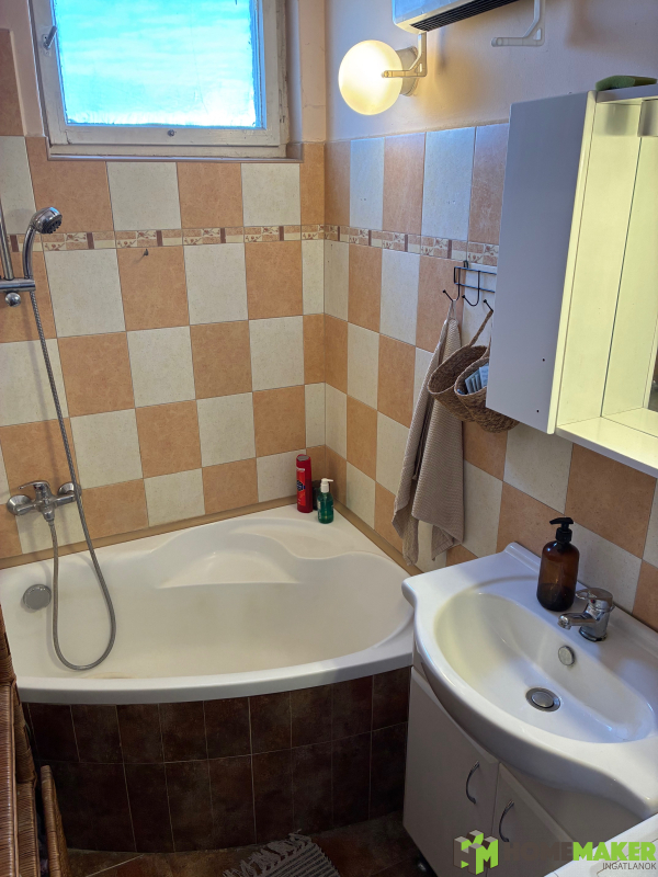 – A fürdőszoba tágas, sarokkáddal berendezett és elfér benne a mosógép, szárítógép is.