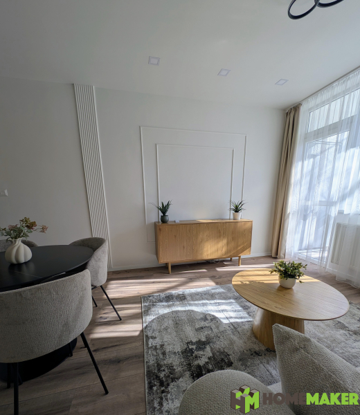 – esztétikus, letisztult enteriőr a nappali-étkezőben